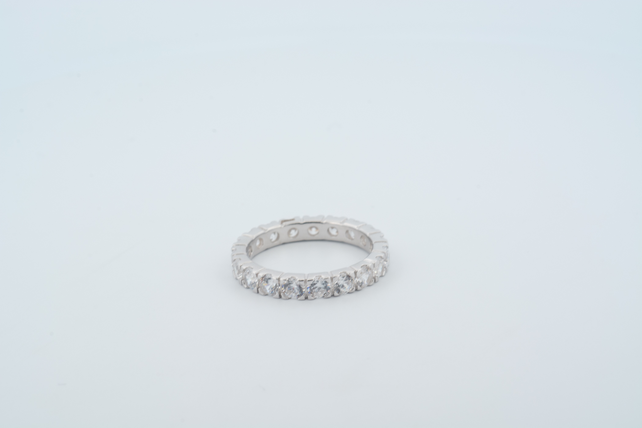 Anello Eternity mm 2,5 4 griffes rodiato zirconi bianchi