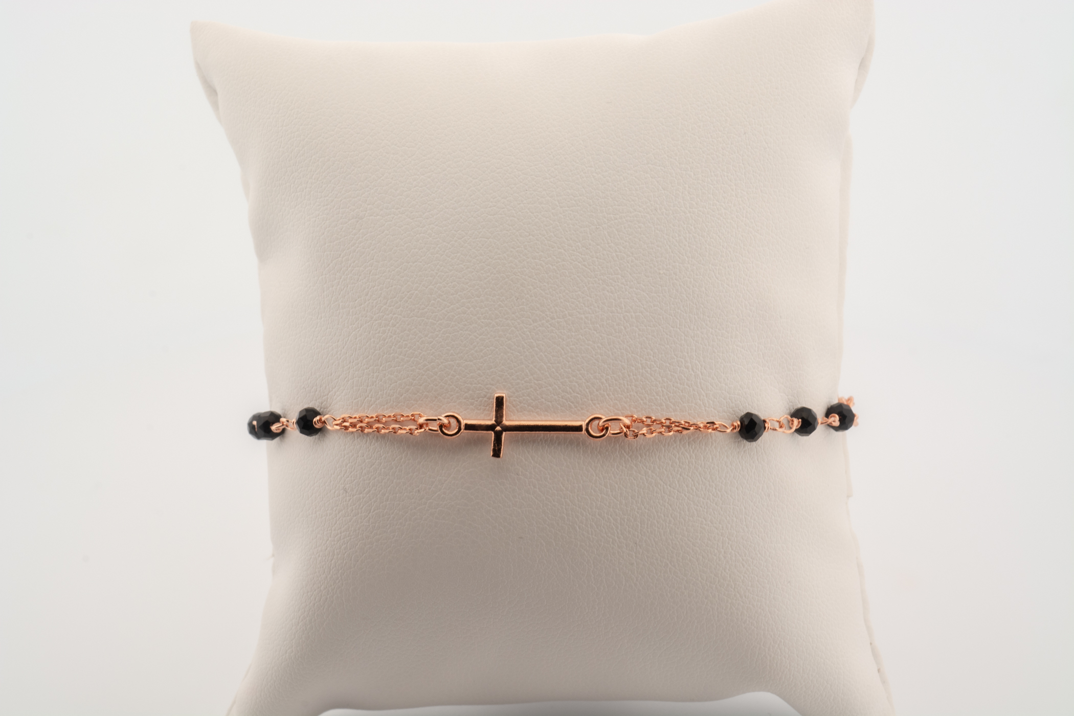 Bracciale rosario a giro pietre nere argento rosè