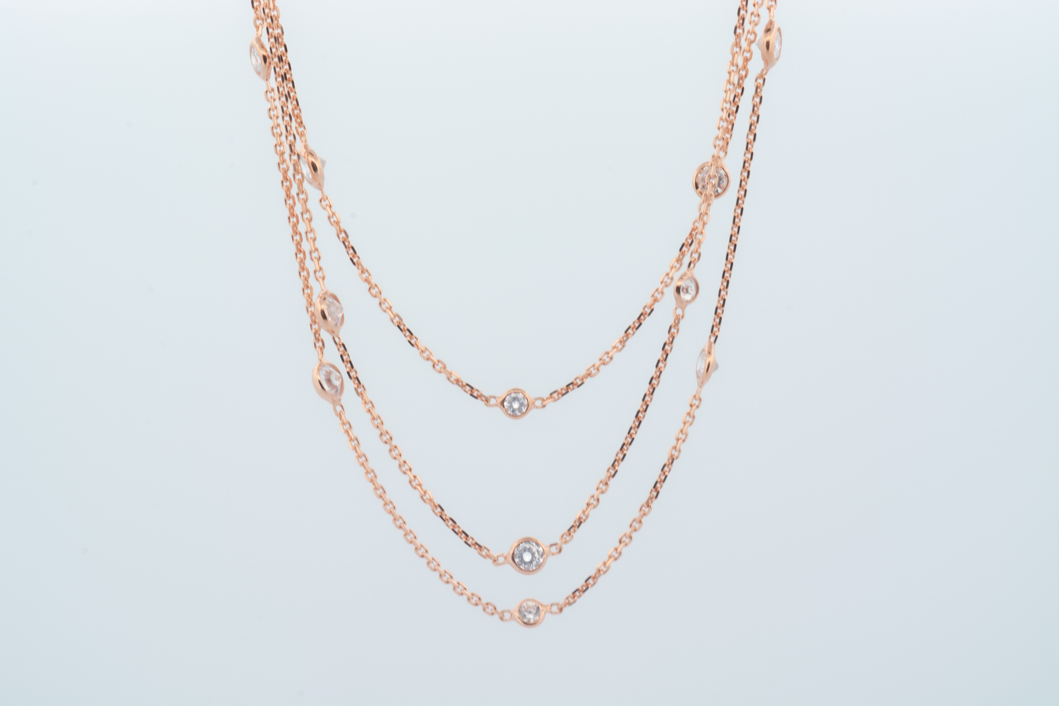 Collana 3 fili 12 zirconi argento rosè